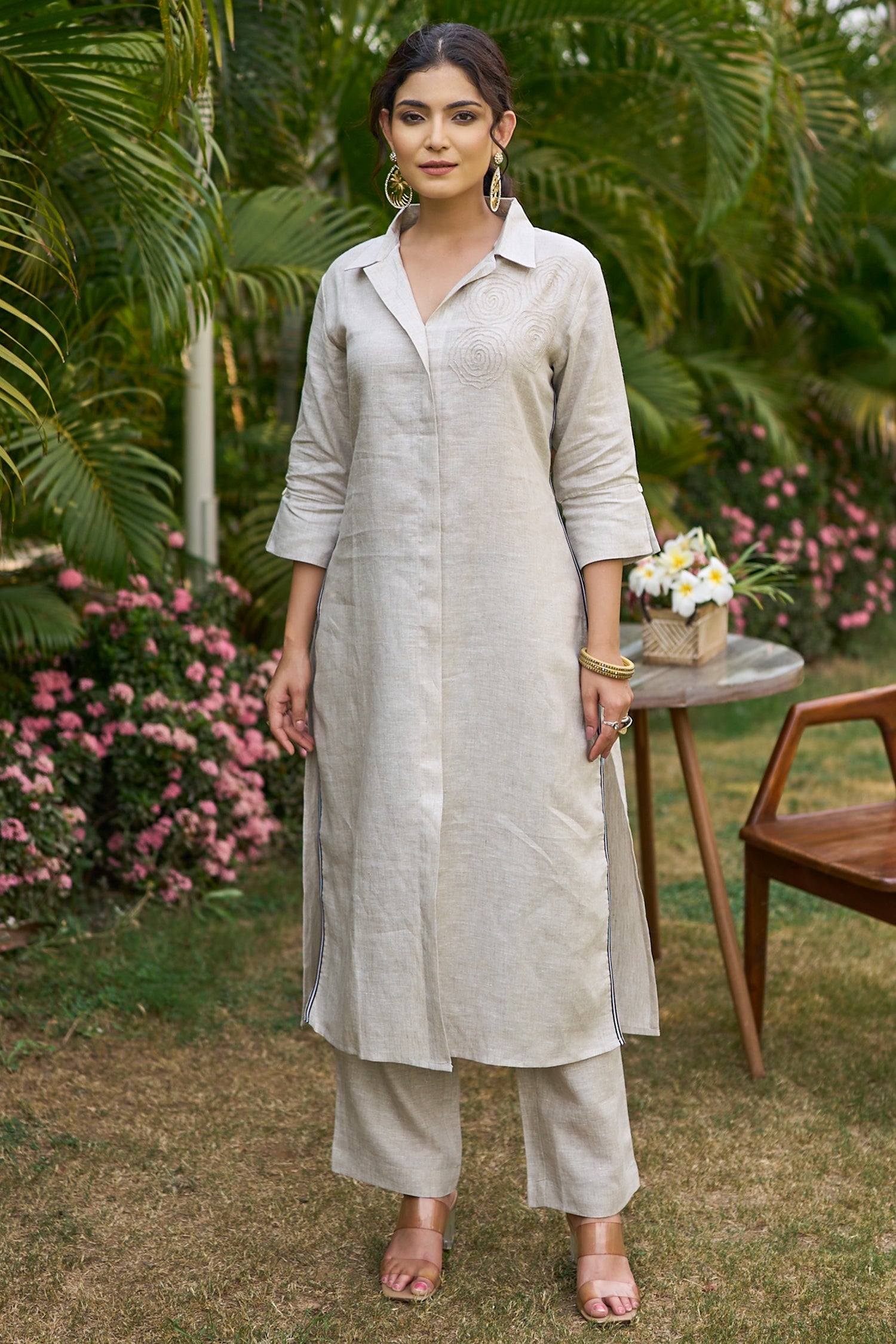 Redefine minimalism with our Stone Beige Coord Set, a refined ensemble that speaks volumes with its clean lines and effortless grace. Ideal for workdays or intimate gatherings, it’s a wardrobe essential for those who appreciate quiet sophistication.
