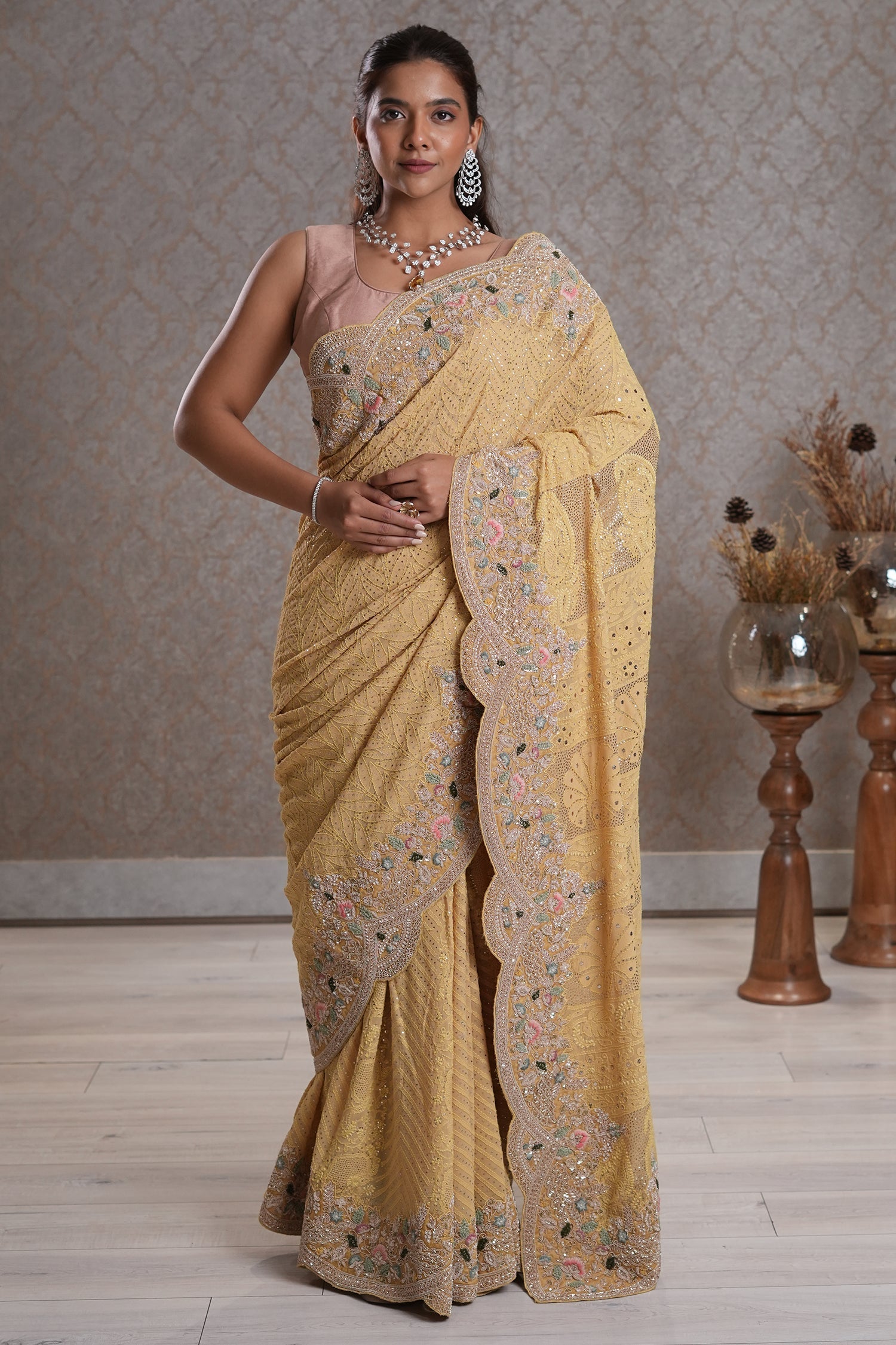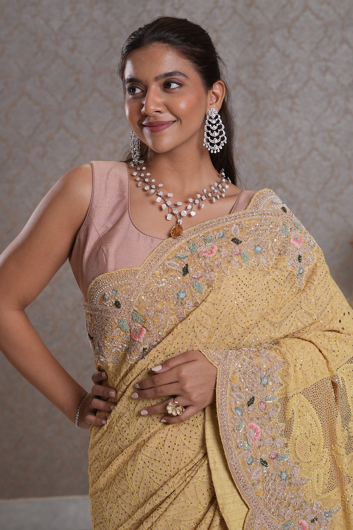 Work=Lucknowi-Chikankari, Sequins, Beads, Cutdana, Embroidery, Zardosi