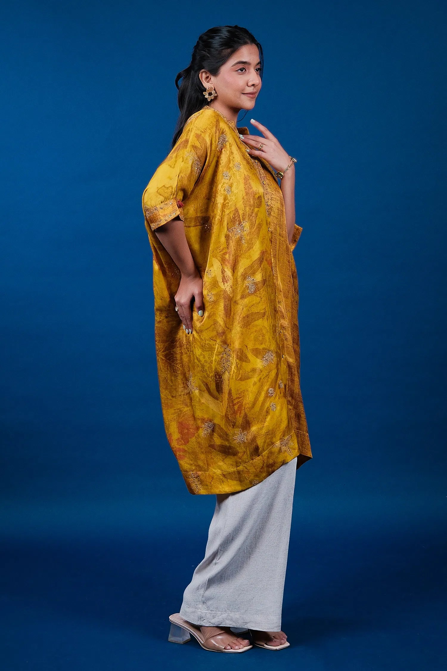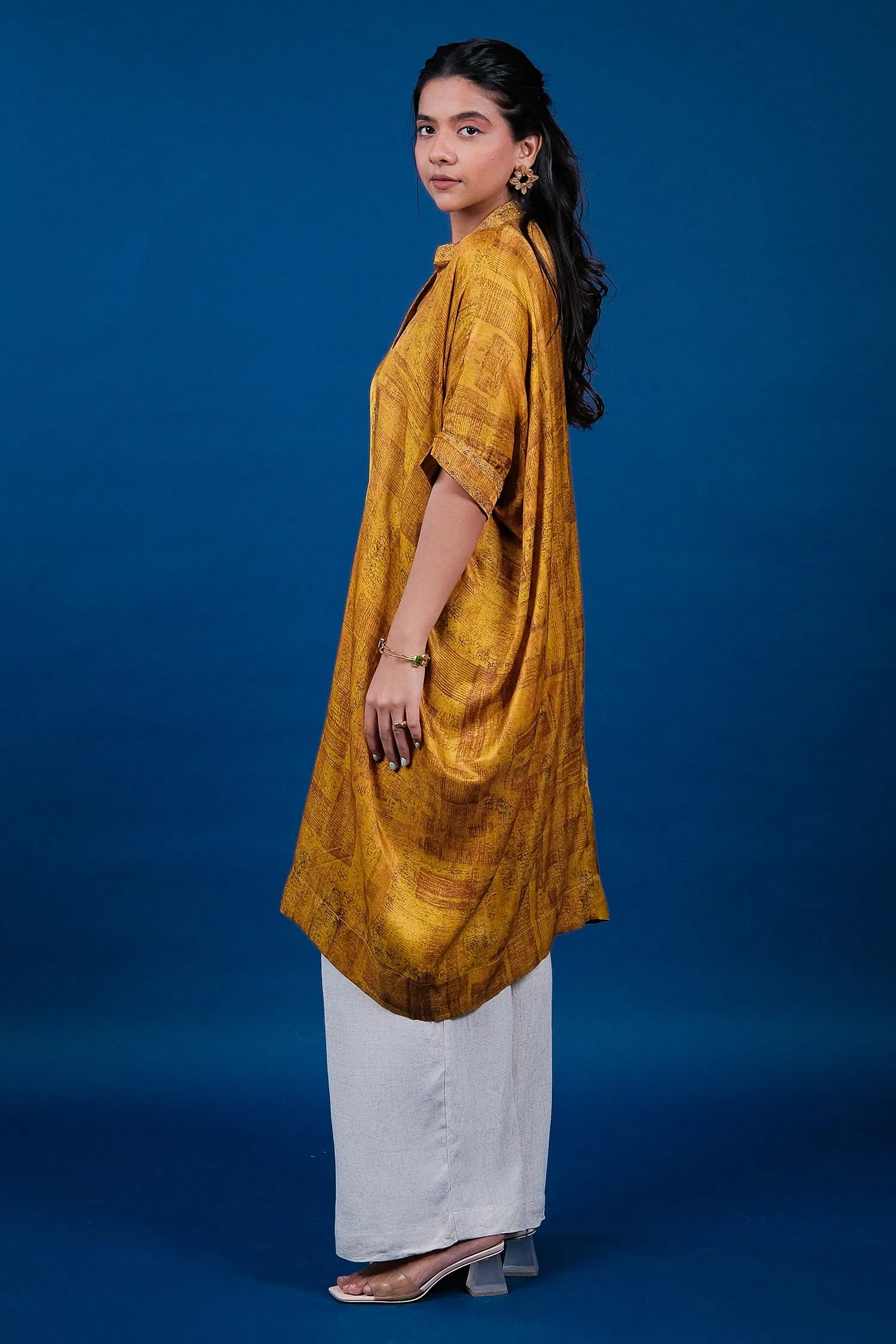 Add a burst of vibrant charm with our Mustard Crepe Silk Printed Kurti, a lively ensemble piece that blends festive flair with effortless polish—an ideal choice for both day events and evening occasions.