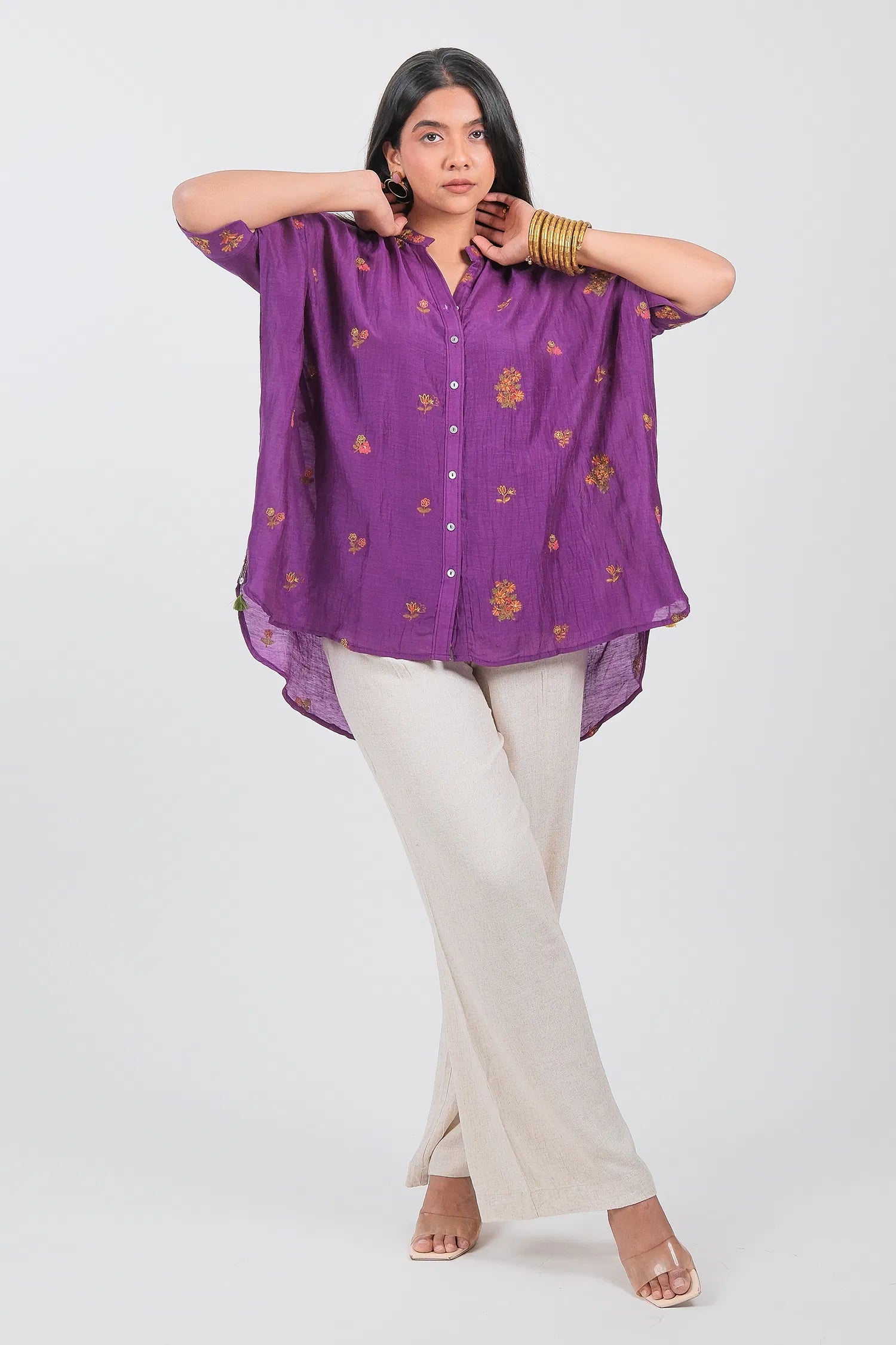 Step into elegant evening mode with our Purple Crepe Silk High-and-Low Tunic Top, a refined piece that blends graceful movement with artisanal flair. Perfect for elevated gatherings, art-filled evenings, or adding richness to everyday chic.