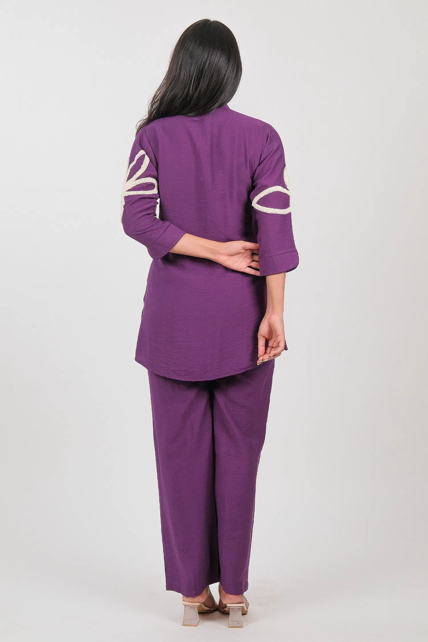 Step into relaxed refinement with our Purple Jatan Cotton Co‑Ord Set, where rich hues meet artisanal charm. Beautifully tailored for effortless ensemble wear, this set is ideal for daytime outings, casual brunches, or creative gatherings.