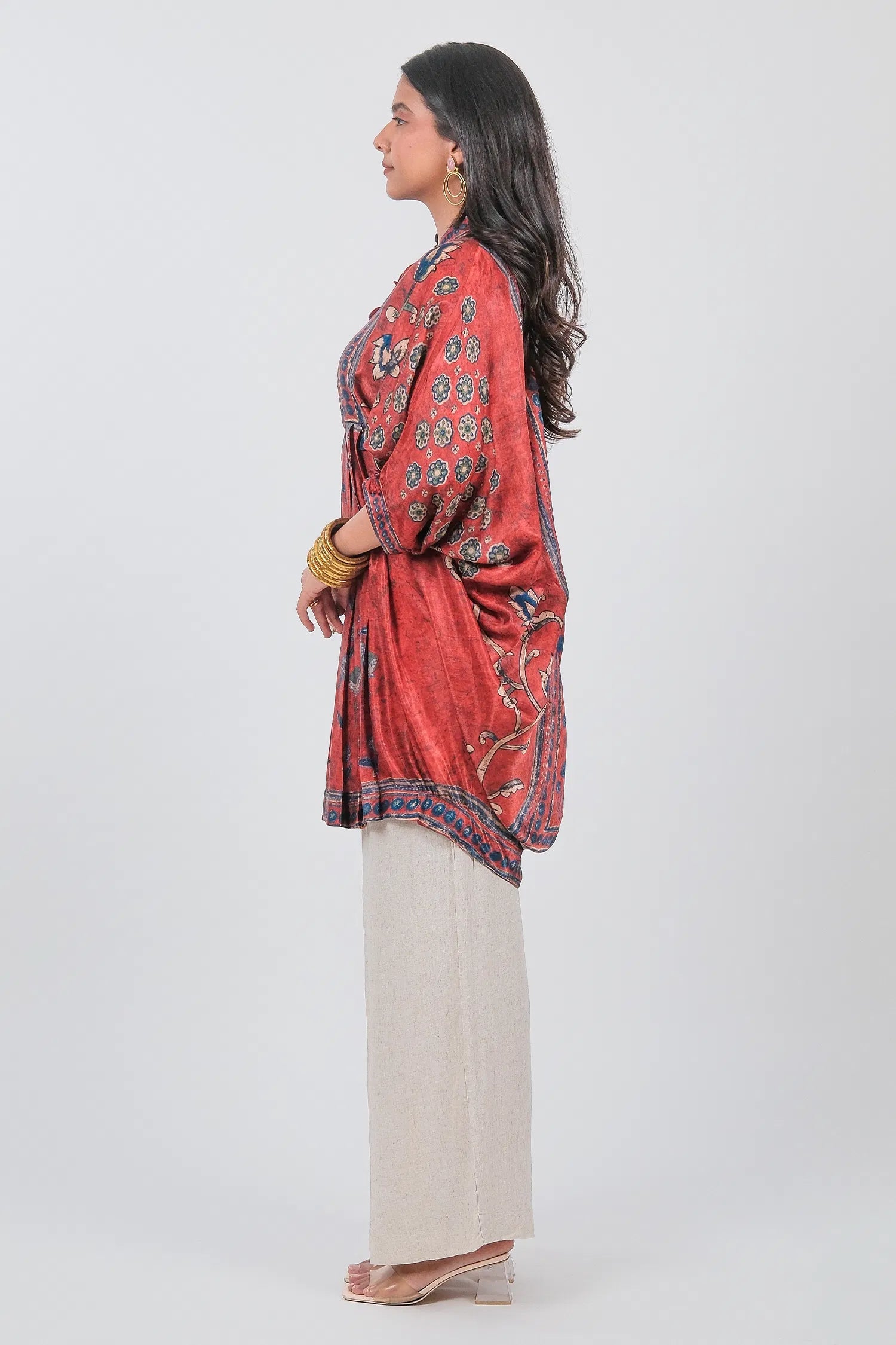 Unveil vibrant elegance with our Red Crepe Silk Kaftan‑Style Tunic, where bold color meets breezy sophistication. Designed for effortless charm, it’s ideal for relaxed evenings, resort-style days, or adding a pop of color to your wardrobe.