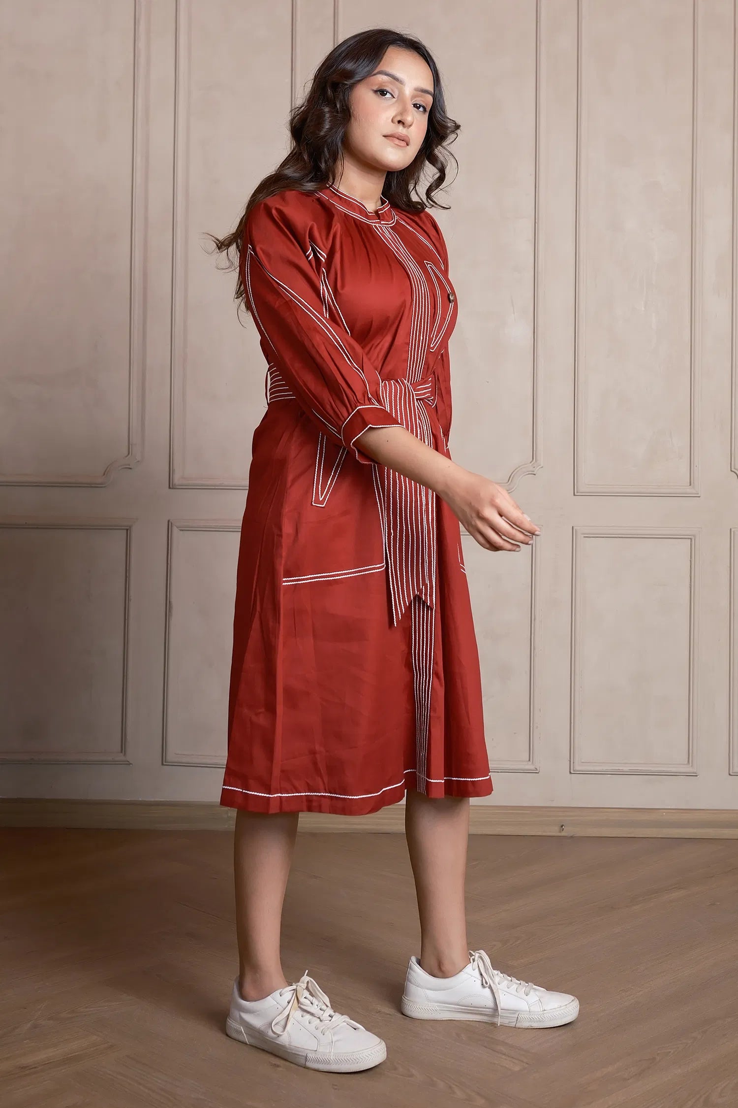 Step into a smart, fuss-free silhouette with this Rust Orange Linen Dress – where everyday functionality meets elevated style. Whether you’re heading to brunch or breezing through errands, this dress makes a bold, grounded statement.