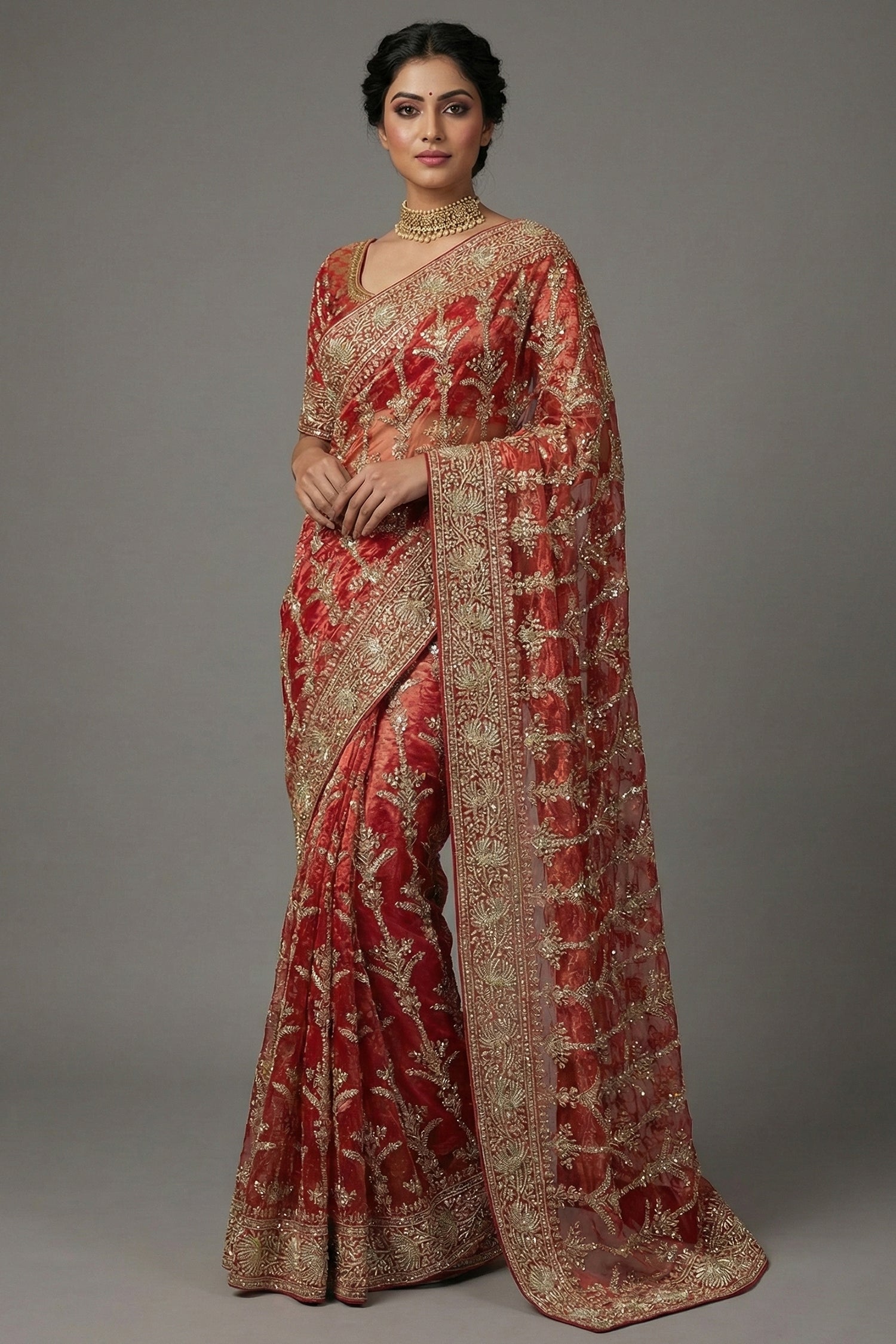 Fabric: Organza Work: Zardosi, Sequins