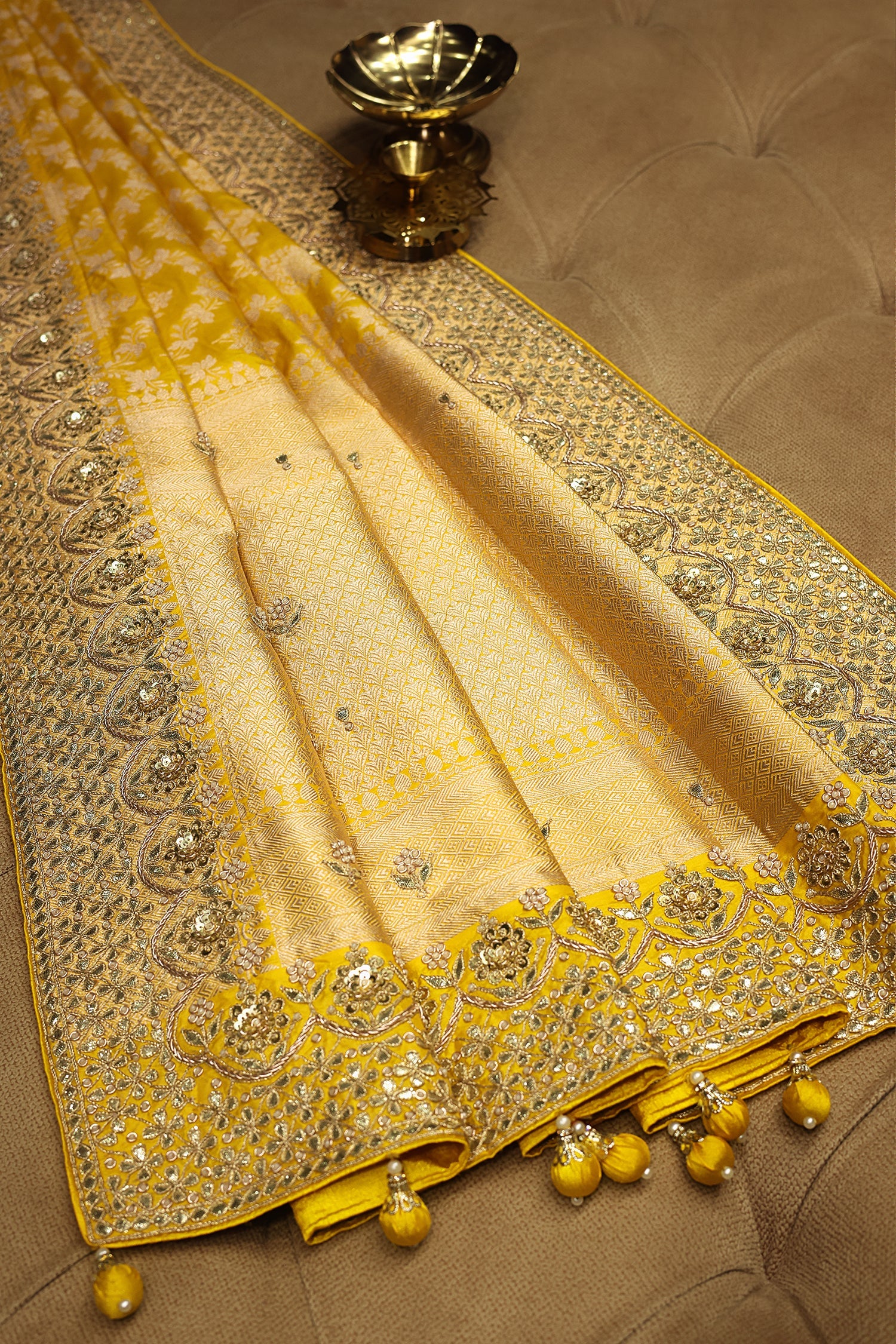 Blouse Color : Yellow Blouse Fabric : Banarasi-Silk